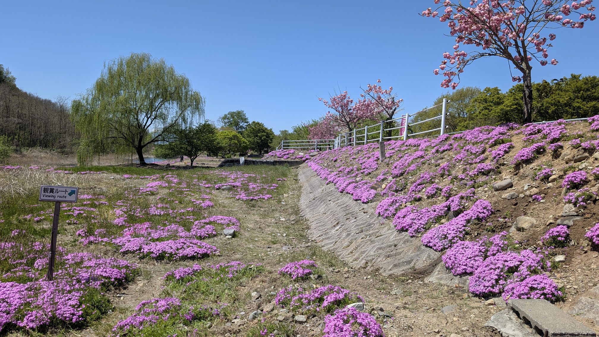 いつしか芝桜が広がる夢の様な美しい河川敷に…